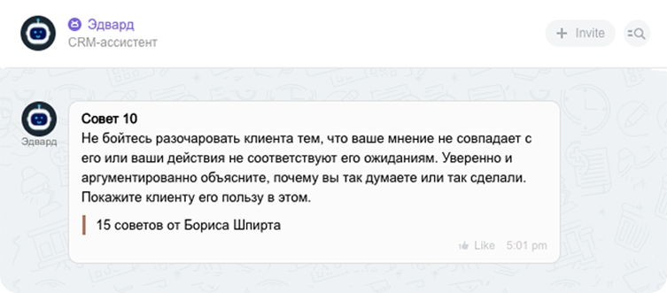 Большая нагрузка, нехватка опыта работы в Битрикс24, или невнимательность мешают сотрудниками работать на 100%. Эдвард помогает не потерять клиента из-за дела, про которое сотрудники забыли или которое просто не увидели. Руководителю легко следить за соблюдением регламентов благодаря регулярным отчетам, получаемым прямо в чате.